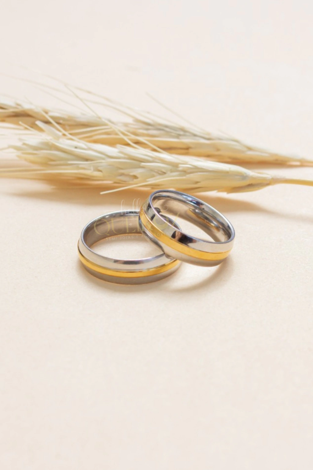 Alianças de Aço Cirúrgico douradas são Banhadas a Ouro 18k. São a escolha perfeita para casais que buscam peças extremamente sofisticadas, com excelente custo-benefício. São peças de muito estilo e elegância com uma cor e brilho incrível, pensados para todos os tipos de casais. Fabricadas com materiais hipoalergênicos, totalmente livre de reações ou alergias com a pele, Possuem finas camadas de Ouro 18k, finalizadas com verniz exclusivo para joia, garantindo ainda mais durabilidade e refinamento nas peças. São acompanhadas de um Certificado de Garantia de 06 (seis) meses. Lembrando que a parte PRATA a cor é permanente.