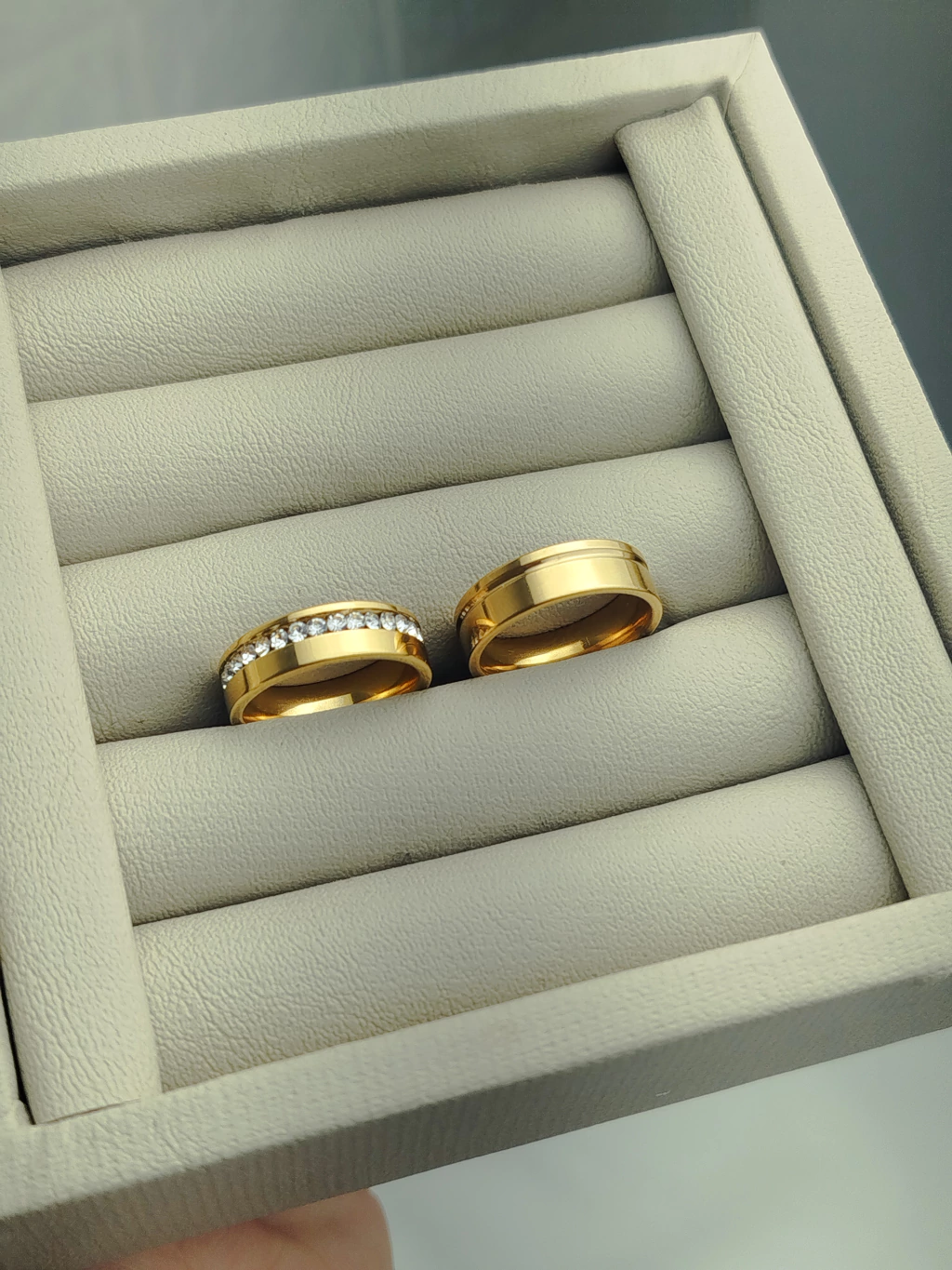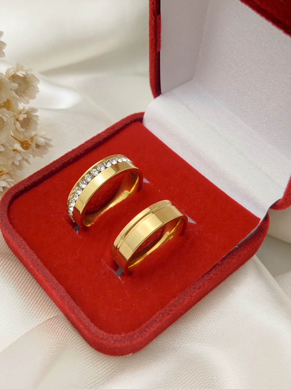 Alianças de Aço Cirúrgico douradas são Banhadas a Ouro 18k. São a escolha perfeita para casais que buscam peças extremamente sofisticadas, com excelente custo-benefício. São peças de muito estilo e elegância com uma cor e brilho incrível, pensados para todos os tipos de casais. Fabricadas com materiais hipoalergênicos, totalmente livre de reações ou alergias com a pele, possuem finas camadas de Ouro 18k, finalizadas com verniz exclusivo para joia, garantindo ainda mais durabilidade e refinamento nas peças. São acompanhadas de um Certificado de Garantia de 06 (seis) meses.