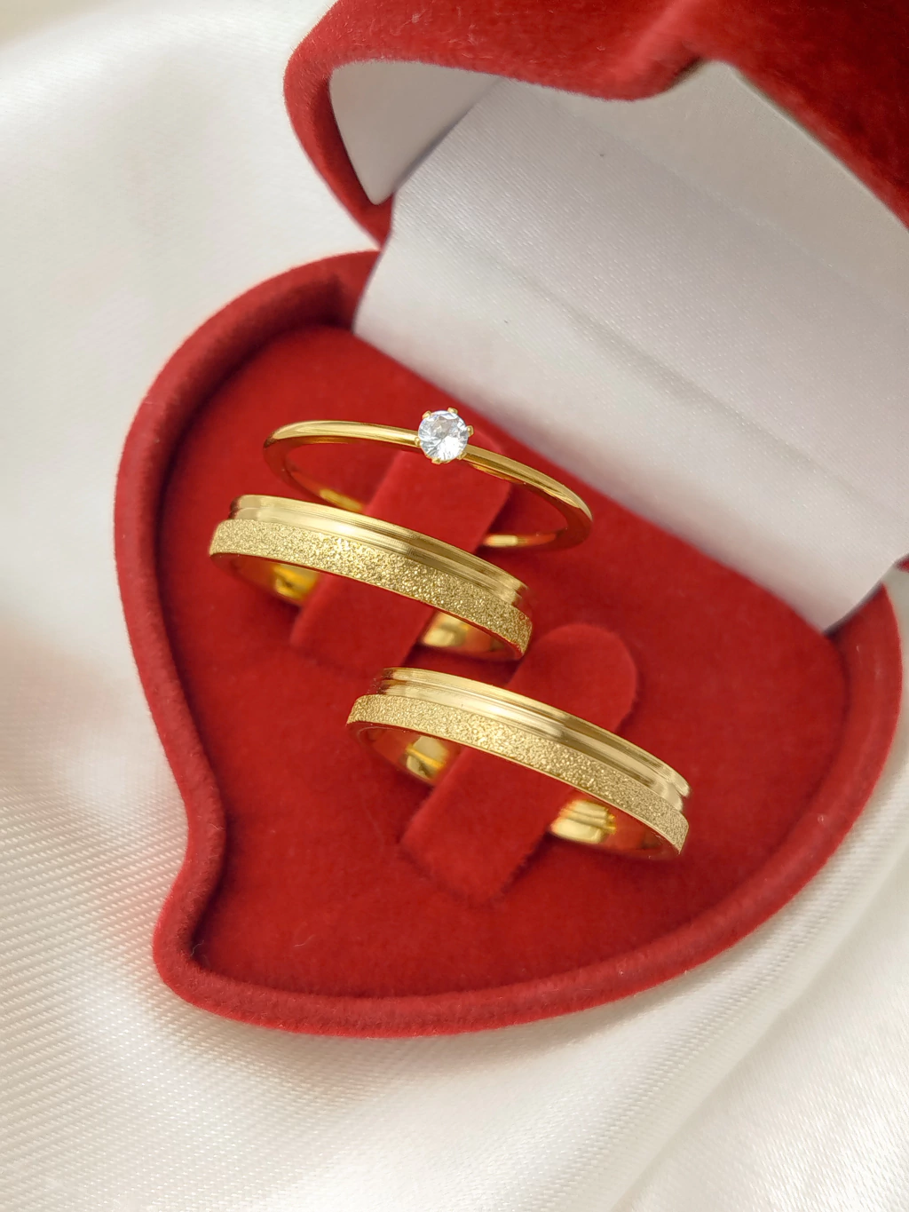 Alianças de Aço Cirúrgico douradas são Banhadas a Ouro 18k. São a escolha perfeita para casais que buscam peças extremamente sofisticadas, com excelente custo-benefício. São peças de muito estilo e elegância com uma cor e brilho incrível, pensados para todos os tipos de casais. Fabricadas com materiais hipoalergênicos, totalmente livre de reações ou alergias com a pele, possuem finas camadas de Ouro 18k, finalizadas com verniz exclusivo para joia, garantindo ainda mais durabilidade e refinamento nas peças. São acompanhadas de um Certificado de Garantia de 06 (seis) meses.
