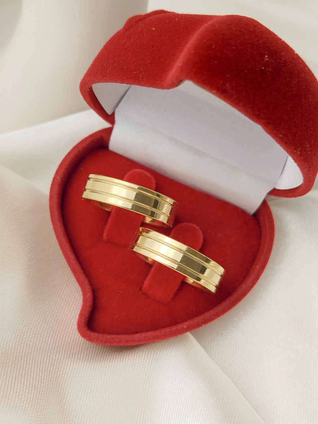 Alianças de Aço Cirúrgico douradas são Banhadas a Ouro 18k. São a escolha perfeita para casais que buscam peças extremamente sofisticadas, com excelente custo-benefício. São peças de muito estilo e elegância com uma cor e brilho incrível, pensados para todos os tipos de casais. Fabricadas com materiais hipoalergênicos, totalmente livre de reações ou alergias com a pele, possuem finas camadas de Ouro 18k, finalizadas com verniz exclusivo para joia, garantindo ainda mais durabilidade e refinamento nas peças. São acompanhadas de um Certificado de Garantia de 06 (seis) meses.