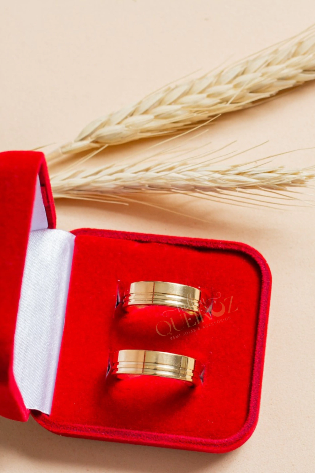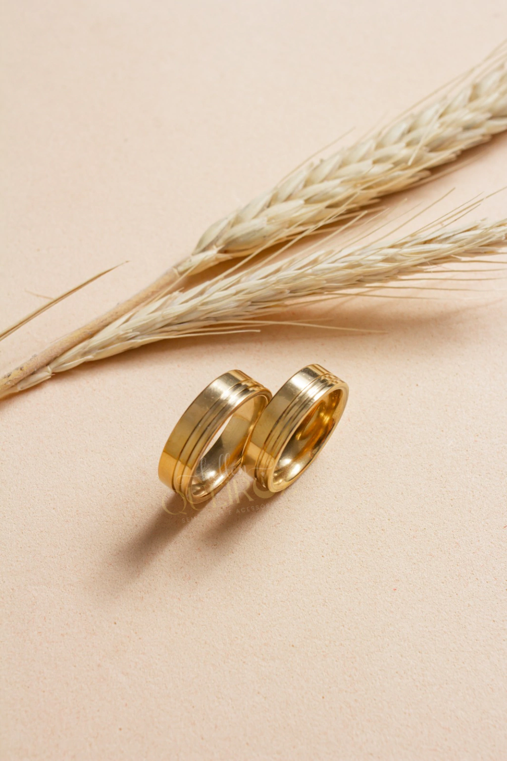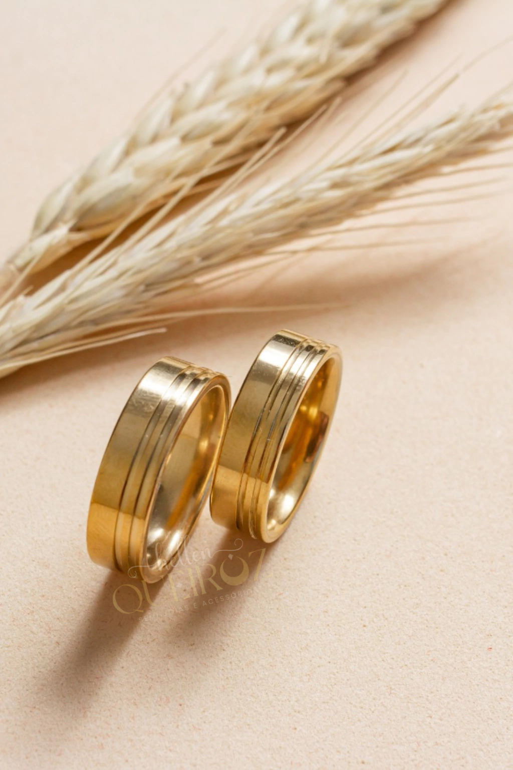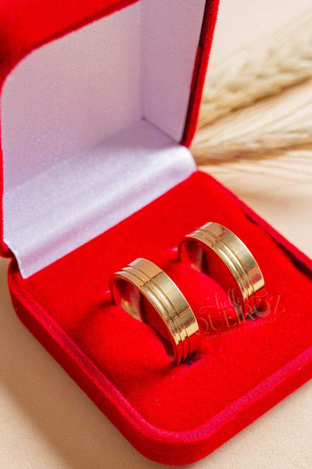 Alianças de Aço Cirúrgico douradas são Banhadas a Ouro 18k. São a escolha perfeita para casais que buscam peças extremamente sofisticadas, com excelente custo-benefício. São peças de muito estilo e elegância com uma cor e brilho incrível, pensados para todos os tipos de casais. Fabricadas com materiais hipoalergênicos, totalmente livre de reações ou alergias com a pele, possuem finas camadas de Ouro 18k, finalizadas com verniz exclusivo para joia, garantindo ainda mais durabilidade e refinamento nas peças. São acompanhadas de um Certificado de Garantia de 06 (seis) meses.