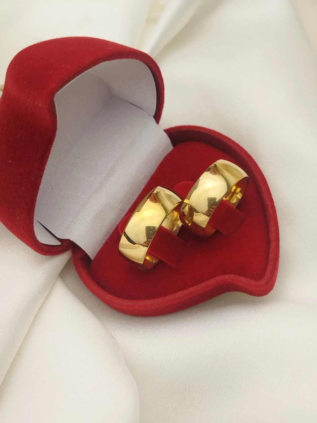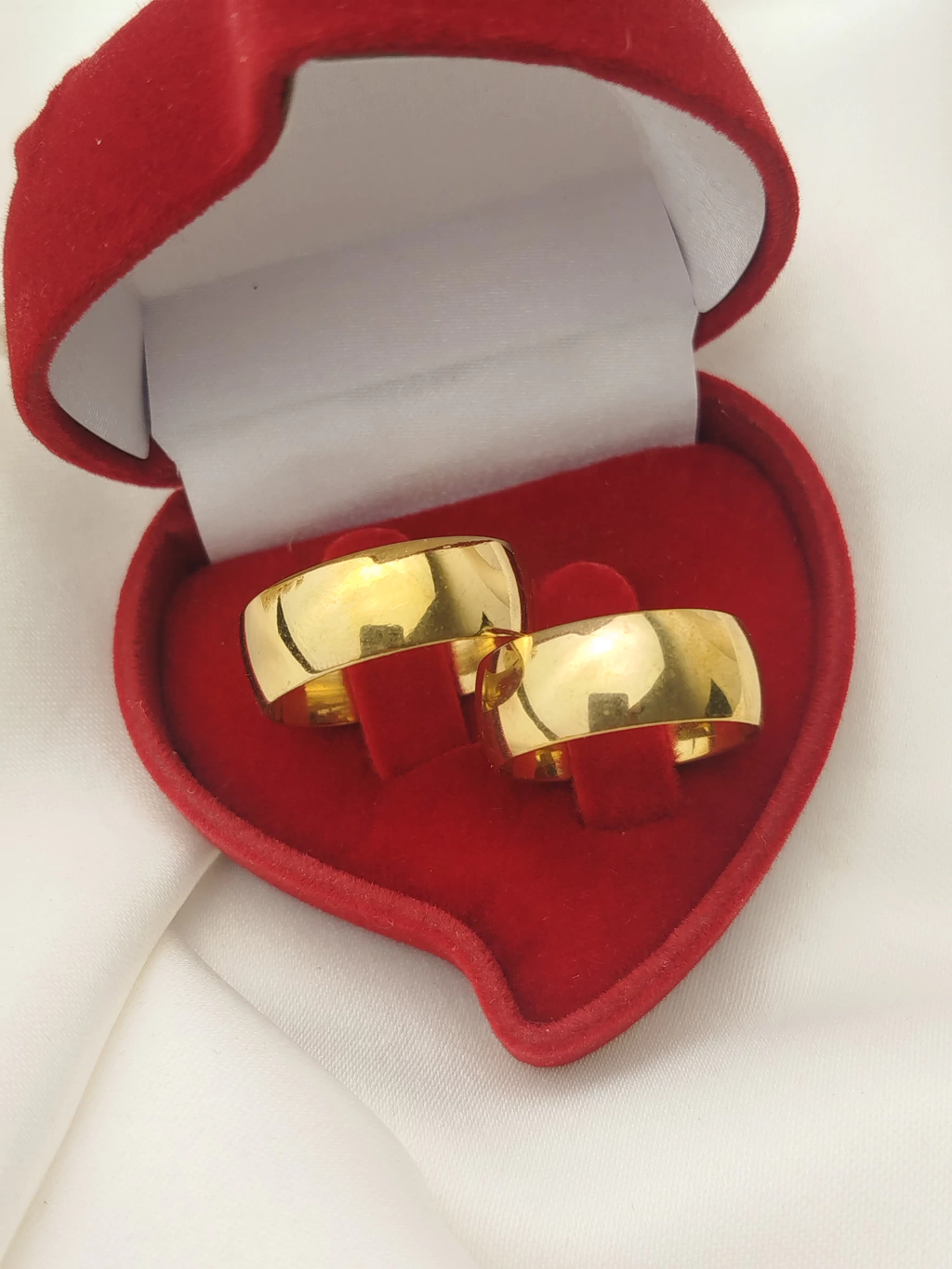Alianças de Aço Cirúrgico douradas são Banhadas a Ouro 18k. São a escolha perfeita para casais que buscam peças extremamente sofisticadas, com excelente custo-benefício. São peças de muito estilo e elegância com uma cor e brilho incrível, pensados para todos os tipos de casais. Fabricadas com materiais hipoalergênicos, totalmente livre de reações ou alergias com a pele, possuem finas camadas de Ouro 18k, finalizadas com verniz exclusivo para joia, garantindo ainda mais durabilidade e refinamento nas peças. São acompanhadas de um Certificado de Garantia de 06 (seis) meses.